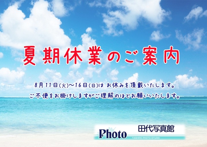 8月11日(火)~16日(日)は お休みを頂戴いたします。